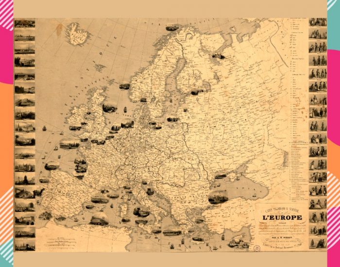 Carte pintoresque et marítime d’Europe, 1841.Fixeu-vos en les miniatures: Al voltant de les costes: Barcelona, Roses, Palma En el lateral esquerre: les capitals estatals de l’època A la dreta: tòpics estigmàtics Cartoteca de Catalunyahttps://cartotecadigital.icgc.cat/…/id/2322/rec/1165 Fem Història ComparteixemailFacebookGoogle+Twitter