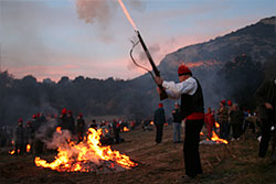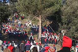 La festa del Pi segueix una cronologia invariable que ha fixat un poble que, en ple solstici d’hivern, surt a tallar el pi més bonic de la contrada i l’ofereix engalanat a la seva patrona Santa Coloma, mentre ho festeja amb una traca eixordadora d’escopetes i trabucs.